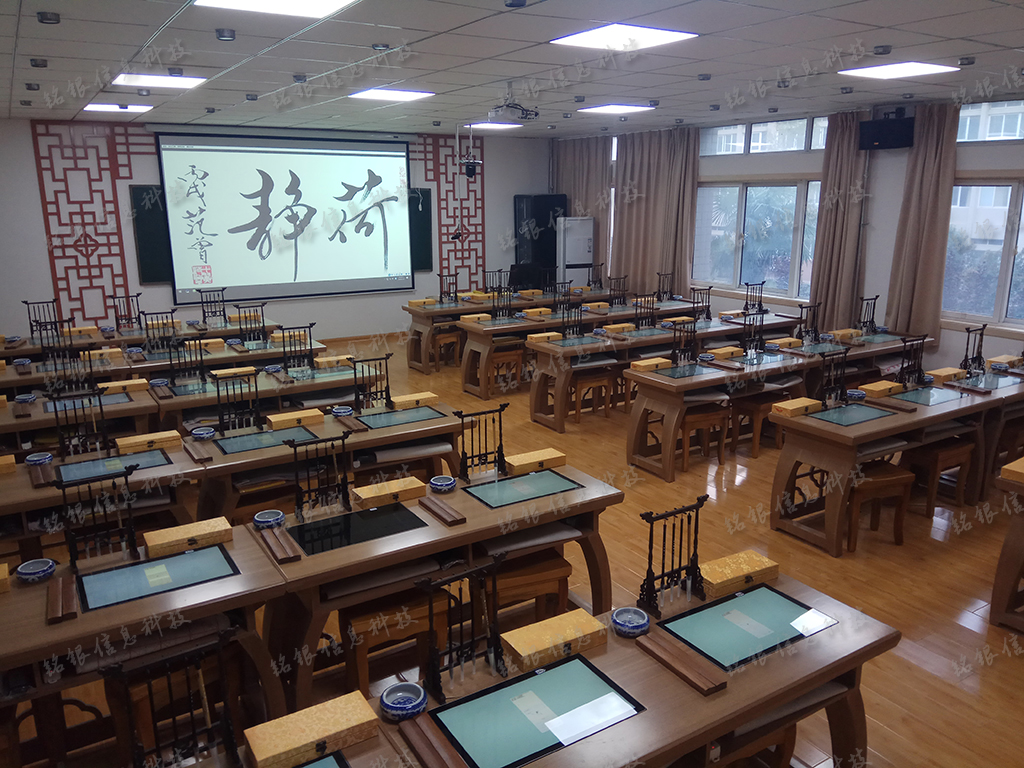 三笔字实训室建设分为“钢笔、软笔实训室”、“粉笔板书实训室”两个部份组成